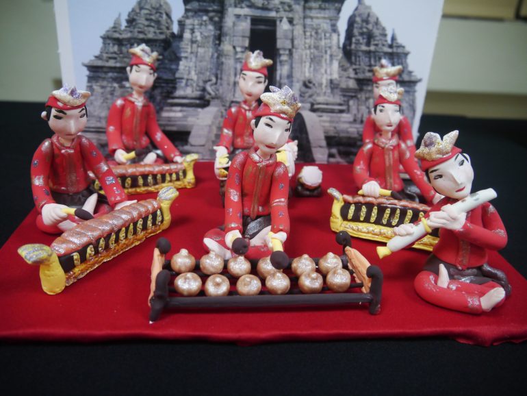 印尼傳統樂器甘美朗(Gamelan)及演奏者,也通通化作Pindy掌中的捏麵人。(Asuka Lee拍攝)