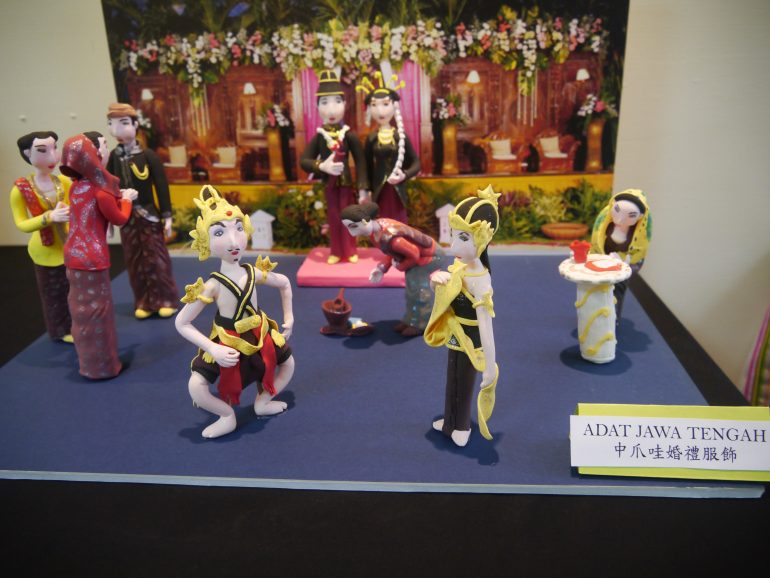 Pindy從自己家鄉中爪哇的文化開始著手,製作出穿著當地婚禮服飾的捏麵人偶。(Asuka Lee拍攝)