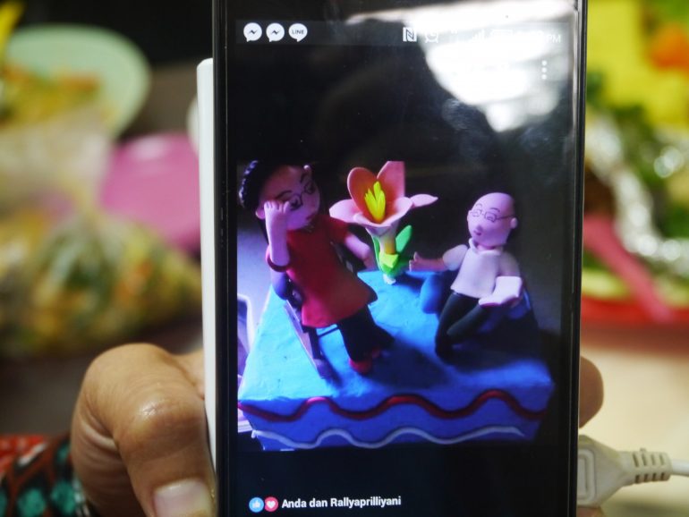 Pindy也把她的台灣雇主家庭做成捏麵人偶,笑說雇主本人看到後非常喜歡。(Asuka Lee拍攝)