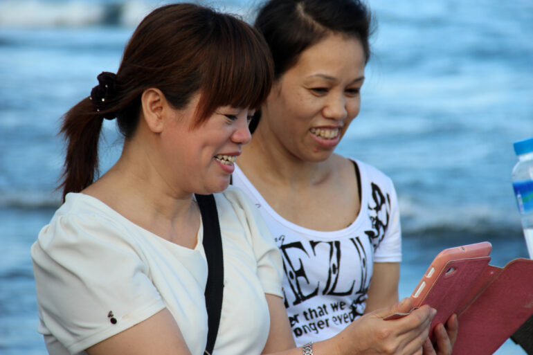 漫長的逃跑歲月裡,范草雲(左)與同樣在臺灣當移工的胞妹碰面是她少數能放鬆的時光。